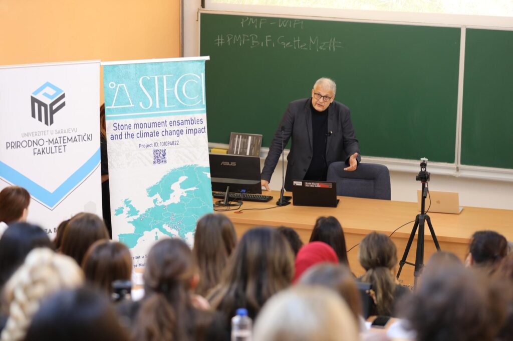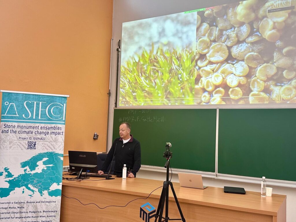 The morning sessions explored the scientific basis of cultural heritage preservation. Prof. Dr. Stefan Simon (SPK) delivered a lecture on the intersection of science and cultural heritage, followed by Prof. Dr. Snežana Radulović (UNSPMF) and Prof. Dr. Samir Đug (UNSA), who discussed the impact of climate change and environmental factors on the biodegradation of building materials.