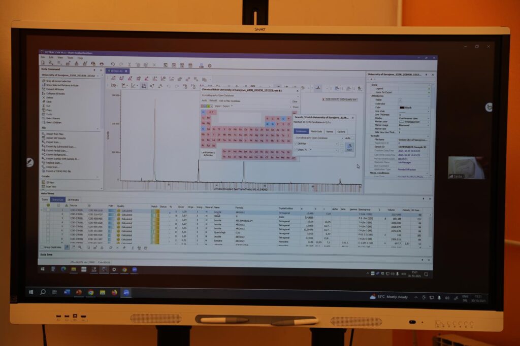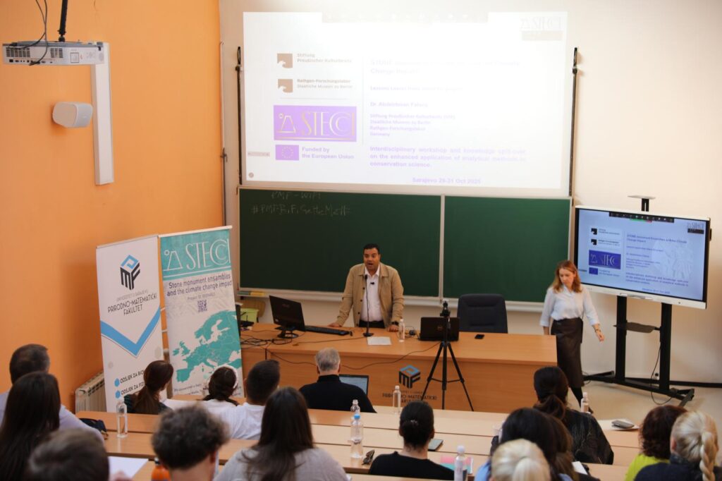 After lunch, Dr. Ivan Alduk presented the story behind the Stećci nomination to the UNESCO World Heritage List. The afternoon continued with Innovative Materials and Techniques for Preservation II and reflections on interdisciplinary collaboration-lessons from STECCI, by Dr. Abdelrhman Fahmy (SPK/UMAS). The day concluded with Practical Demonstrations 1 (XRD) led by UNSA (Mr. Kerim Hrvat).