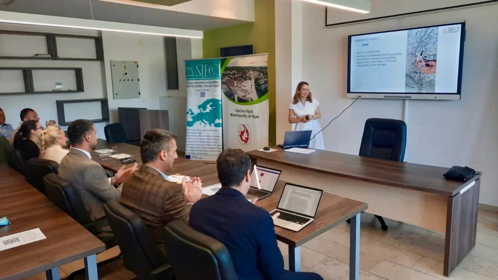 As part of WP6, Task 6.1, the University of Donja Gorica (UDG) and the University of Sarajevo (UNSA) jointly organized a workshop in Ilijaš on 15 September 2025, dedicated to assessing the Willingness to Pay (WTP) for the preservation of Stećci. The workshop was hosted in cooperation with the Municipality of Ilijaš and aimed to collect data for the economic valuation of Stećci while raising public awareness of their cultural significance and the challenges posed by climate change.