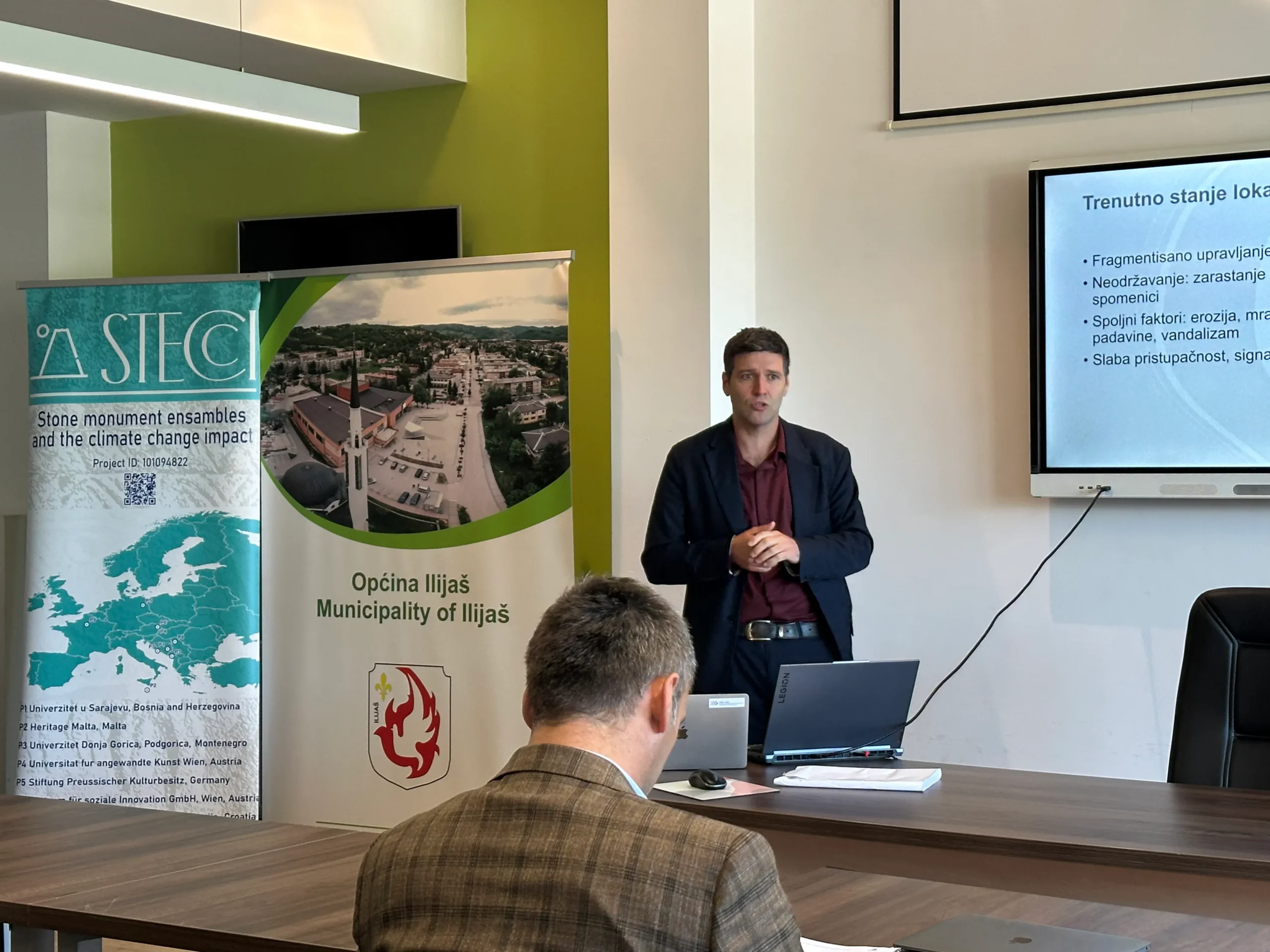 The event opened with welcoming remarks by the Mayor of Ilijaš, Mr. Amar Dovadžija, followed by an overview of the European Commission’s support for cultural heritage and sustainable tourism presented by the STECCI Project Coordinator, Prof. Dr. Nusret Drešković. The Project Manager, Prof. Dr. Saida Ibragić, introduced the STECCI Project and the upcoming Summer Academy 2, outlining the project’s broader aims within Horizon Europe. An academic perspective on Stećci and medieval Bosnia was provided by Prof. Dr. Edin Bujak, while Prof. Dr. Amina Sivac presented the role of Stećci within the European cultural route framework.